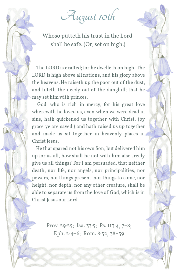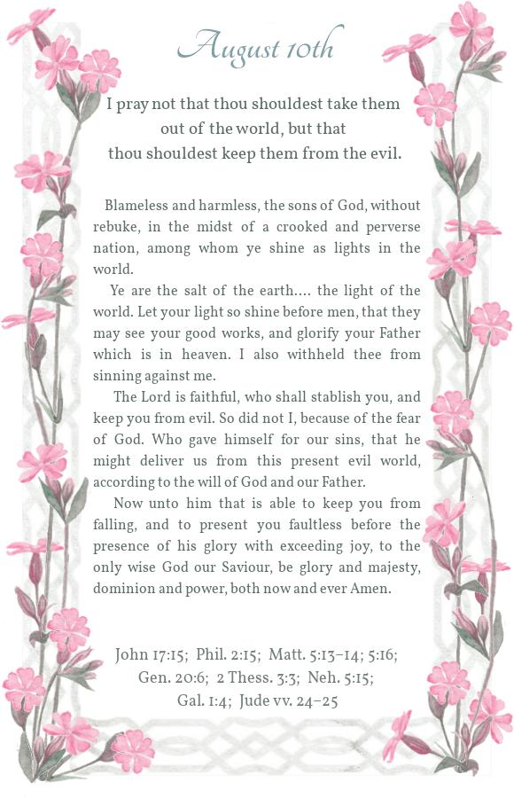 Daily Light August 10th Morning Reading Evening Reading Share this: Share on X (Opens in new window) X Share on Facebook (Opens in new window) Facebook Share on Pinterest (Opens in new window) Pinterest Like Loading...