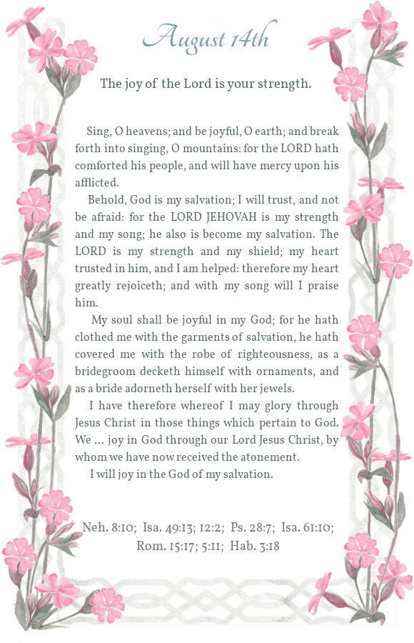 Daily Light August 14th Morning Reading Evening Reading Share this: Click to share on X (Opens in new window) X Click to share on Facebook (Opens in new window) Facebook Click to share on Pinterest (Opens in new window) Pinterest Like Loading...