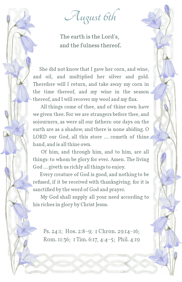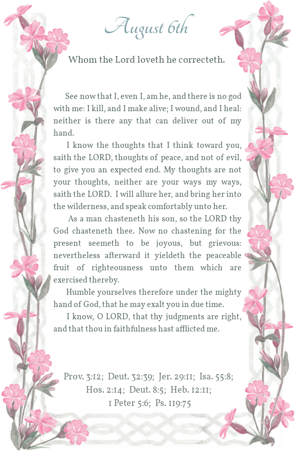 Daily Light August 6th Morning Reading Evening Reading Share this: Click to share on X (Opens in new window) X Click to share on Facebook (Opens in new window) Facebook Click to share on Pinterest (Opens in new window) Pinterest Like Loading...