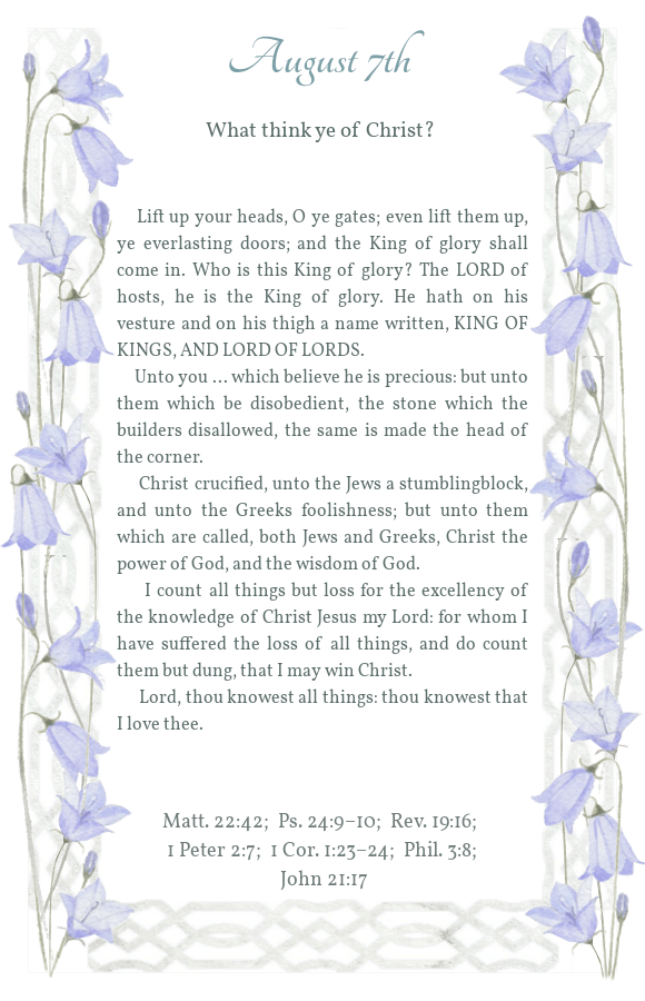 Daily Light August 7th Morning Reading Evening Reading Share this: Click to share on X (Opens in new window) X Click to share on Facebook (Opens in new window) Facebook Click to share on Pinterest (Opens in new window) Pinterest Like Loading...