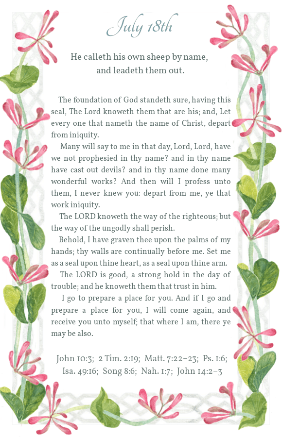Daily Light July 18th Morning Reading Evening Reading Share this: Share on X (Opens in new window) X Share on Facebook (Opens in new window) Facebook Share on Pinterest (Opens in new window) Pinterest Like Loading...