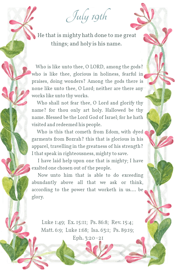 Daily Light July 19th Morning Reading Evening Reading Share this: Click to share on X (Opens in new window) X Click to share on Facebook (Opens in new window) Facebook Click to share on Pinterest (Opens in new window) Pinterest Like Loading...