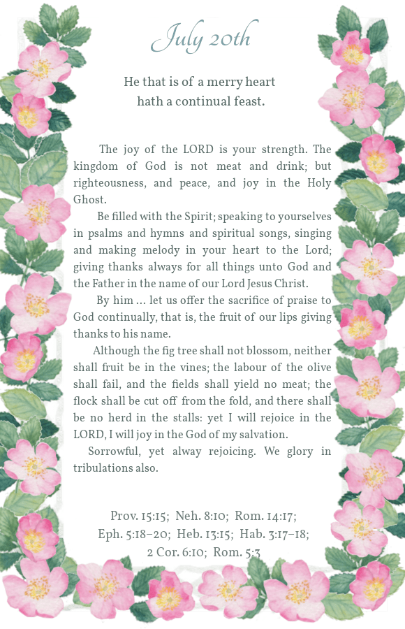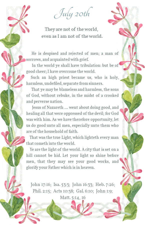 Daily Light July 20th Morning Reading Evening Reading Share this: Share on X (Opens in new window) X Share on Facebook (Opens in new window) Facebook Share on Pinterest (Opens in new window) Pinterest Like Loading...