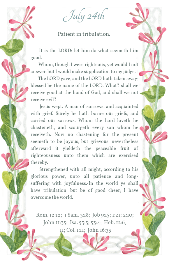 Daily Light July 24th Morning Reading Evening Reading Share this: Click to share on X (Opens in new window) X Click to share on Facebook (Opens in new window) Facebook Click to share on Pinterest (Opens in new window) Pinterest Like Loading...