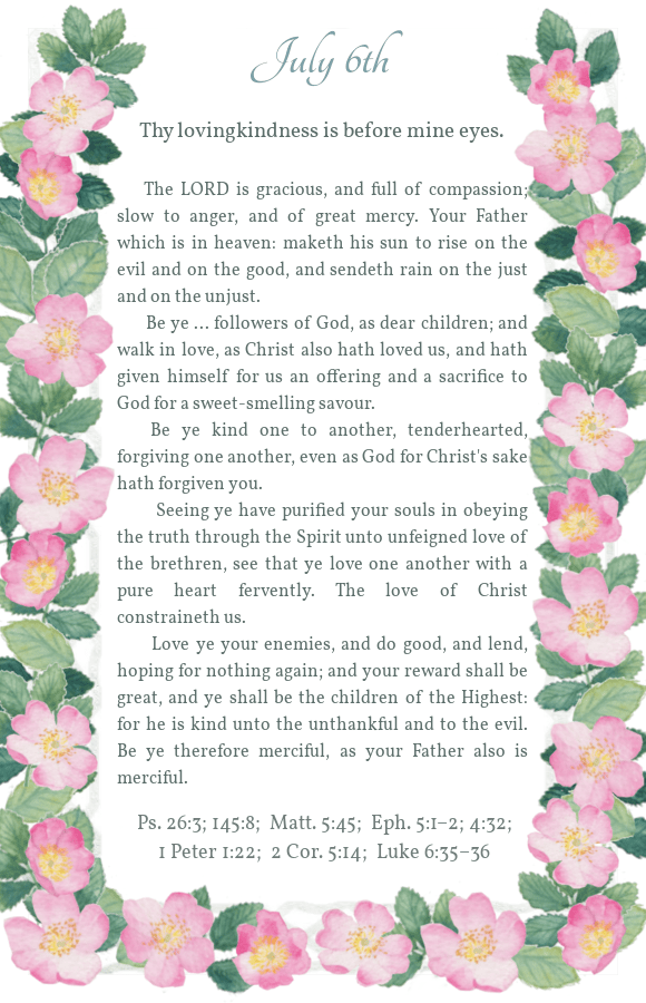 Daily Light July 6th Morning Reading Evening Reading Share this: Click to share on X (Opens in new window) X Click to share on Facebook (Opens in new window) Facebook Click to share on Pinterest (Opens in new window) Pinterest Like Loading...