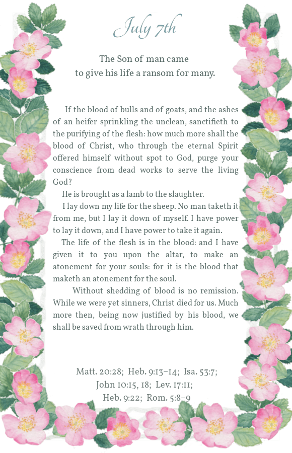 Daily Light July 7th Morning Reading Evening Reading Share this: Share on X (Opens in new window) X Share on Facebook (Opens in new window) Facebook Share on Pinterest (Opens in new window) Pinterest Like Loading...