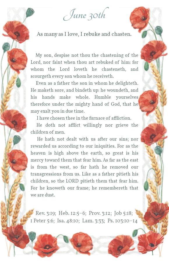 Daily Light June 30th Morning Reading Morning Reading Evening Reading Share this: Click to share on X (Opens in new window) X Click to share on Facebook (Opens in new window) Facebook Click to share on Pinterest (Opens in new window) Pinterest Like Loading...