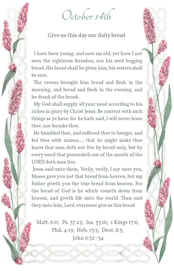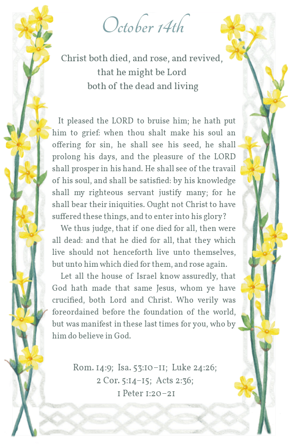 Daily Light October 14th Morning Reading Evening Reading Share this: Share on X (Opens in new window) X Share on Facebook (Opens in new window) Facebook Share on Pinterest (Opens in new window) Pinterest Like Loading...