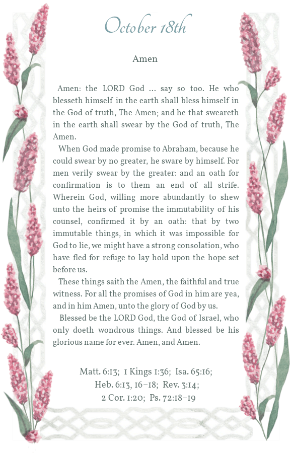 Daily Light October 18th Morning Reading Evening Reading Share this: Click to share on X (Opens in new window) X Click to share on Facebook (Opens in new window) Facebook Click to share on Pinterest (Opens in new window) Pinterest Like Loading...