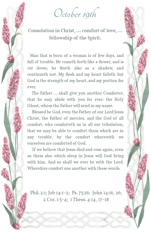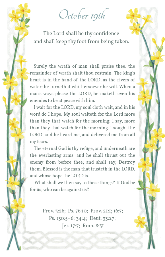 Daily Light October 19th Morning Reading Evening Reading Share this: Share on X (Opens in new window) X Share on Facebook (Opens in new window) Facebook Share on Pinterest (Opens in new window) Pinterest Like Loading...