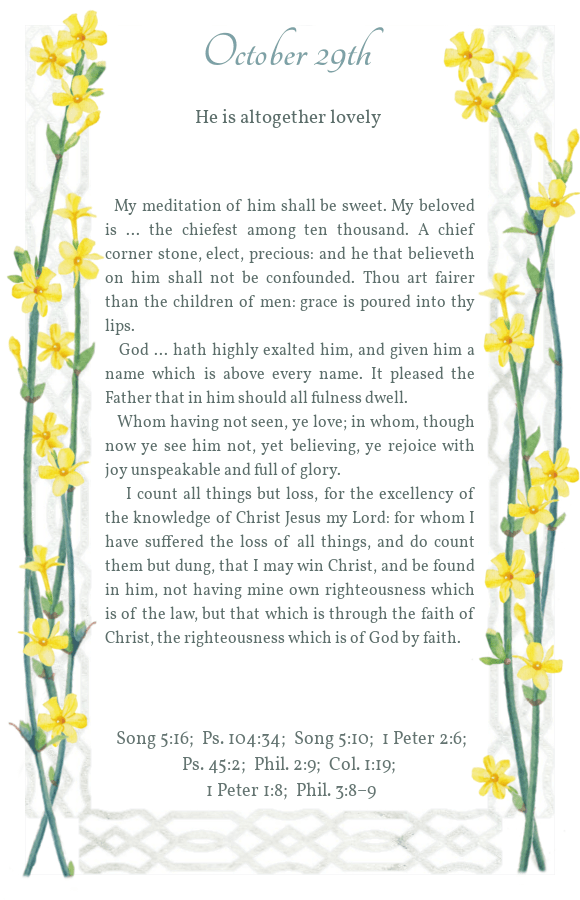 Daily Light October 29th Morning Reading Evening Reading Share this: Share on X (Opens in new window) X Share on Facebook (Opens in new window) Facebook Share on Pinterest (Opens in new window) Pinterest Like Loading...
