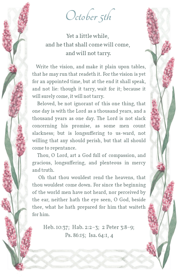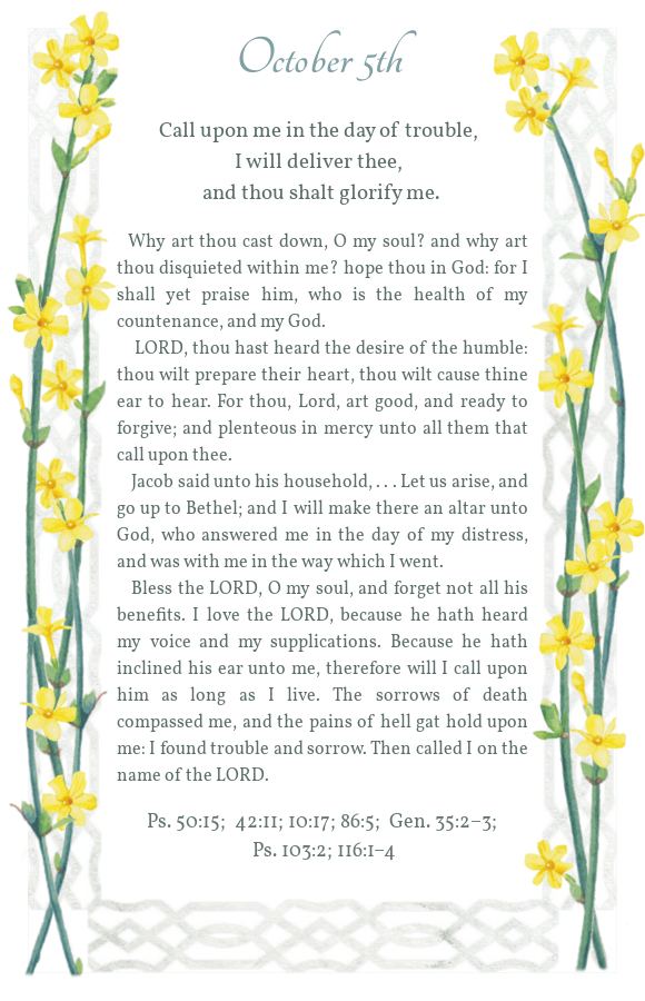 Daily Light October 5th Morning Reading Evening Reading Share this: Click to share on X (Opens in new window) X Click to share on Facebook (Opens in new window) Facebook Click to share on Pinterest (Opens in new window) Pinterest Like Loading...