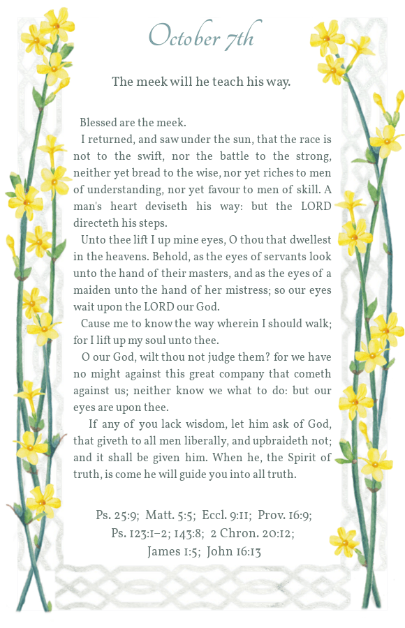 Daily Light October 7th Morning Reading Evening Reading Share this: Click to share on X (Opens in new window) X Click to share on Facebook (Opens in new window) Facebook Click to share on Pinterest (Opens in new window) Pinterest Like Loading...
