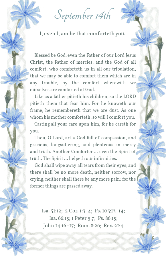 Daily Light September 14th Morning Reading Evening Reading Share this: Click to share on X (Opens in new window) X Click to share on Facebook (Opens in new window) Facebook Click to share on Pinterest (Opens in new window) Pinterest Like Loading...