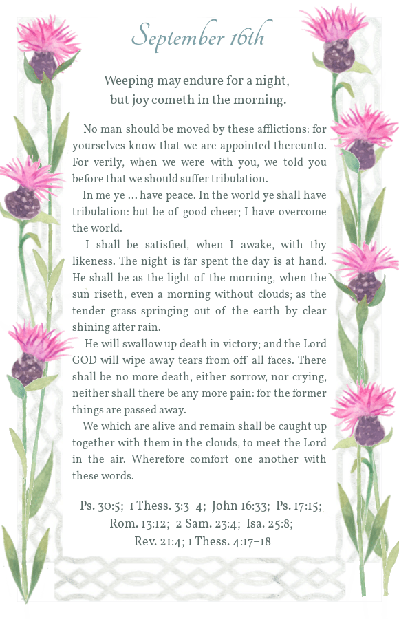 Daily Light September 16th Morning Reading Evening Reading Share this: Click to share on X (Opens in new window) X Click to share on Facebook (Opens in new window) Facebook Click to share on Pinterest (Opens in new window) Pinterest Like Loading...