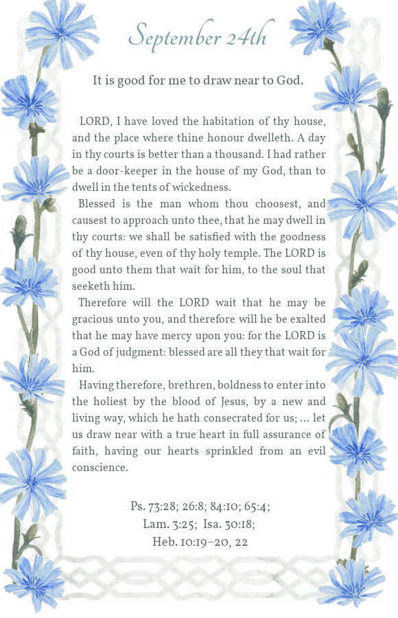 Daily Light September 24th Morning Reading Evening Reading Share this: Click to share on X (Opens in new window) X Click to share on Facebook (Opens in new window) Facebook Click to share on Pinterest (Opens in new window) Pinterest Like Loading...