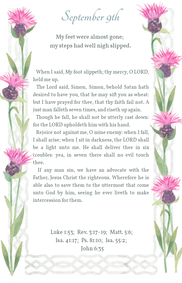 Daily Light September 9th Morning Reading Evening Reading Share this: Click to share on X (Opens in new window) X Click to share on Facebook (Opens in new window) Facebook Click to share on Pinterest (Opens in new window) Pinterest Like Loading...
