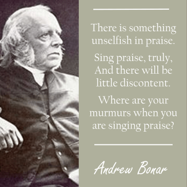 Is there a better remedy for discontent than praise, true praise? Where are your murmurs when you are singing praise? Oh, if those that fret and are discontented at little things, or at great things, would only substitute praise, they would soon know it is good to give thanks. Praise is sanctifying: praise chases away hard thoughts of God, which even good men often call ‘infirmities,’ but which are really downright corruption, and dishonouring to God, as much as were the murmurs in the camp of Israel.