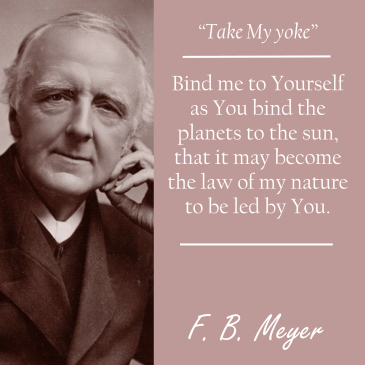 The Yoke means fellowship. The Divine and the human united in feeding the five thousand; in turning the water into wine; in the raising of Lazarus! There has never been an island redeemed from cannibalism to service for Christ, or a paralytic cleansed and healed apart from the co-operation of the Divine and Human. Yoke-bearing anticipates the Harvest. So we plough the furrow in Hope, knowing that one day the Harvest will be ripe, and One like unto the Son of Man will thrust in His sharp sickle and reap. What joy to share in that Harvest-Home!