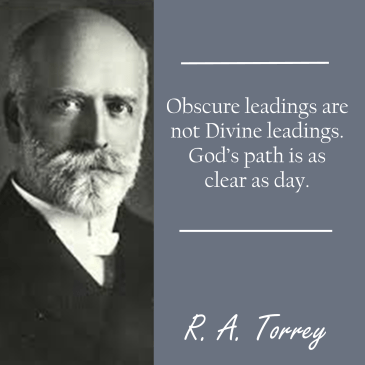 Do not be anxious over obscure leadings. Do not let your soul be ruffled by the thought, “Perhaps this obscure leading is what God wants me to do.” Obscure leadings are not divine leadings. God’s path is as clear as day. Satan’s path is full of obscurity and uncertainty and anxiety and questioning.