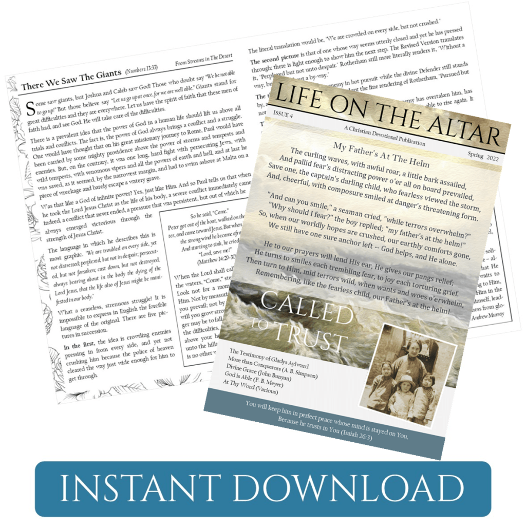 Do you know, beloved, that Christ’s greatest victories were alone with God and the devil? No human eye saw that victory in the wilderness, but God saw it and was glorified. Shall we stand for Him? God is looking for those on whom He can depend, to stand as bulwarks and battlements against the shocks of hell’s artillery. Shall we, beloved, be not only conquerors, but trusted soldiers whom God can use as His battle-axes and His weapons of war, as His mighty iron-clads, to carry the battle to the very ships of the enemy, not fearing their hardest blows, and hurling against them the thunder-bolts of His victorious power?